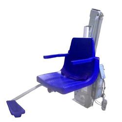Most pool lifts come with a chair that the patient sits upon while lowered into the swimming pool.