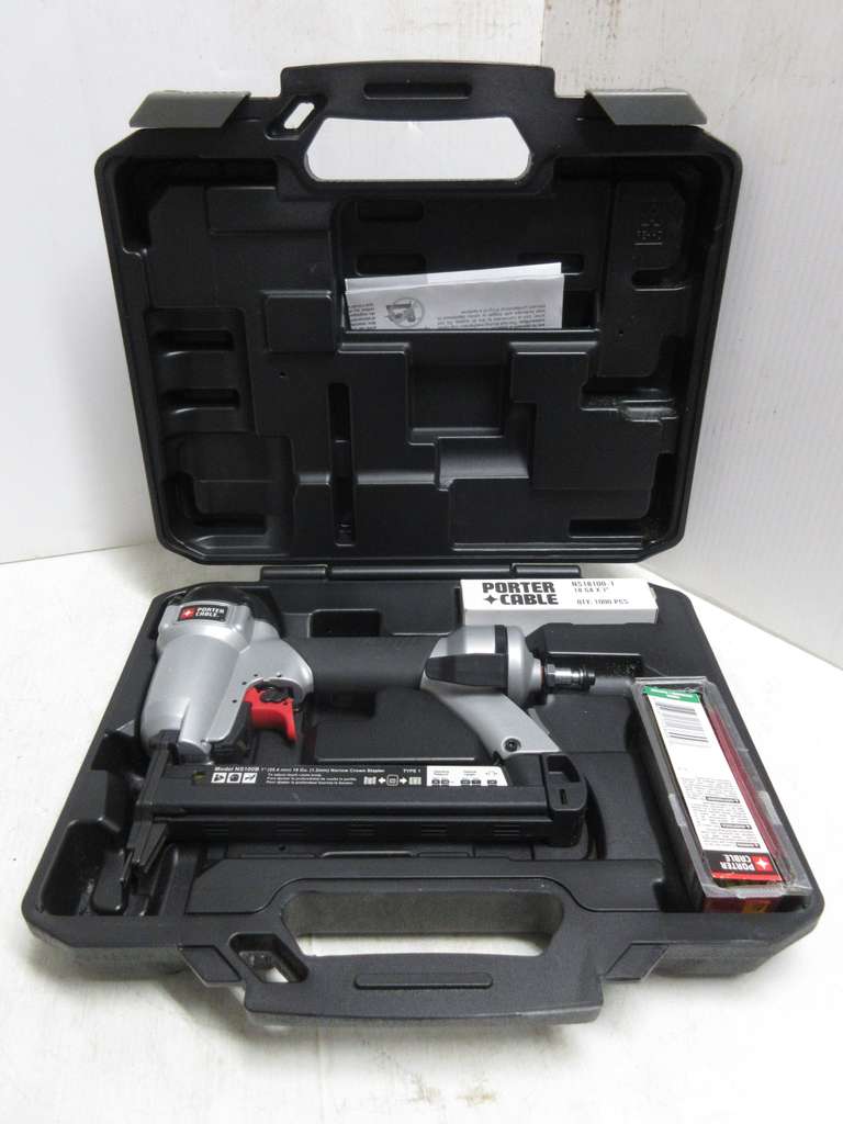 The porter cable ns100b 1 2 inch to 1 1 4 inch 18 gauge crown stapler comes with a long life maintenance free motor for added reliability and an internal piston catch for consistent maximum power on every shot.