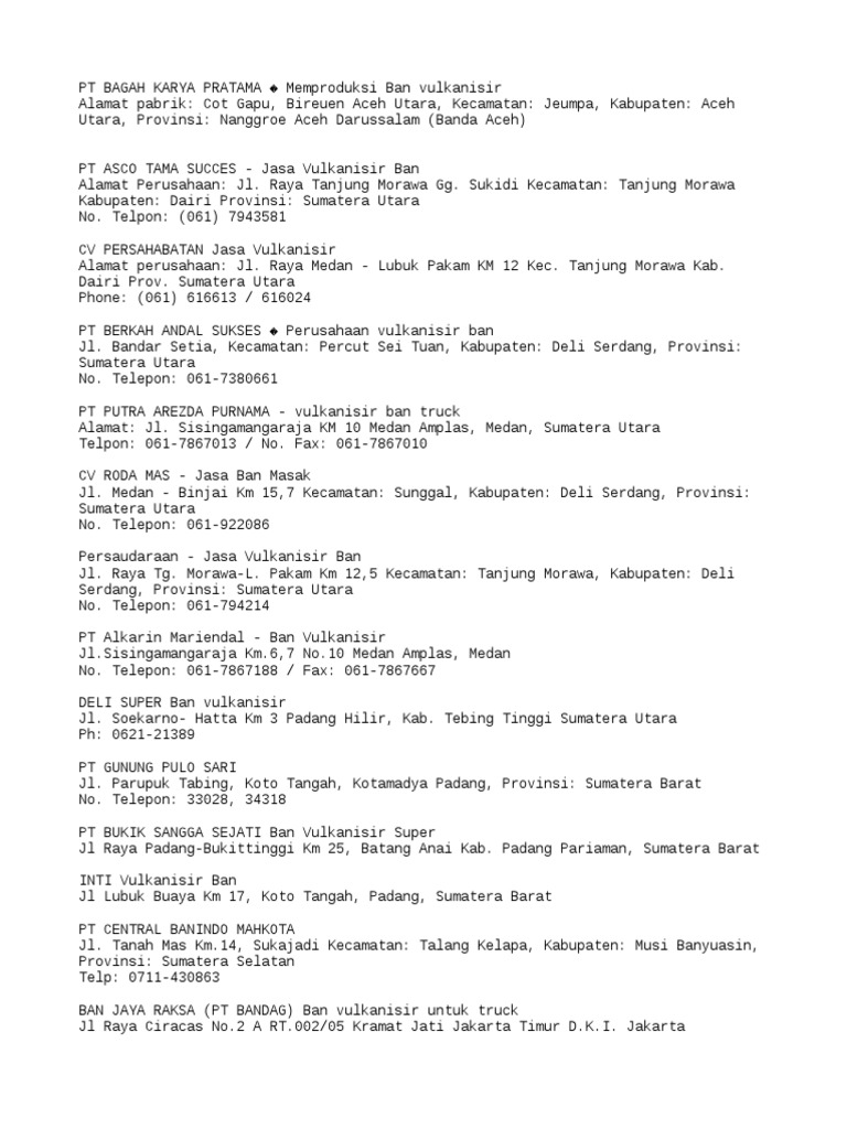 Banteng pratama rubber no 68 blok c9 10 jalan pangeran jayakarta.
